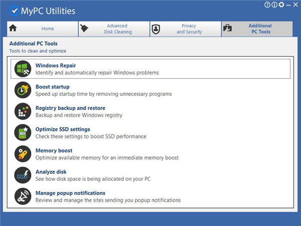 7、Additional PC Tools其他PC工具,提供很多电脑清洁和优化工具