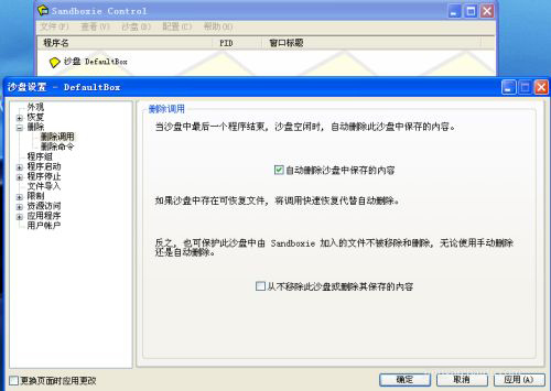 3、配置沙盘退出时自动删除保存的内容,以节省硬盘空间: