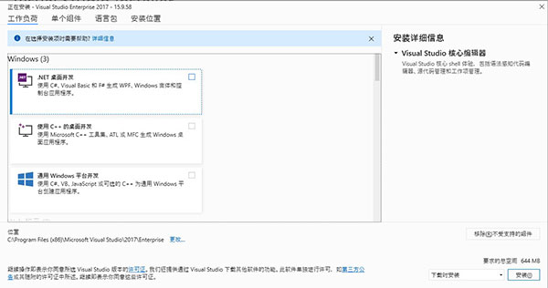 全新安装体验上一次安装程序大更新还是在2010到2012的时候,这次更新就是以更现代、模块化为主题。上一次安装程序大更新还是在2010到2012的时候,这次更新就是以更现代、模块化为主题。顺便这次也不再强制安装VB和C#,对于需要用VS写其它语言的用户应该是个好消息。