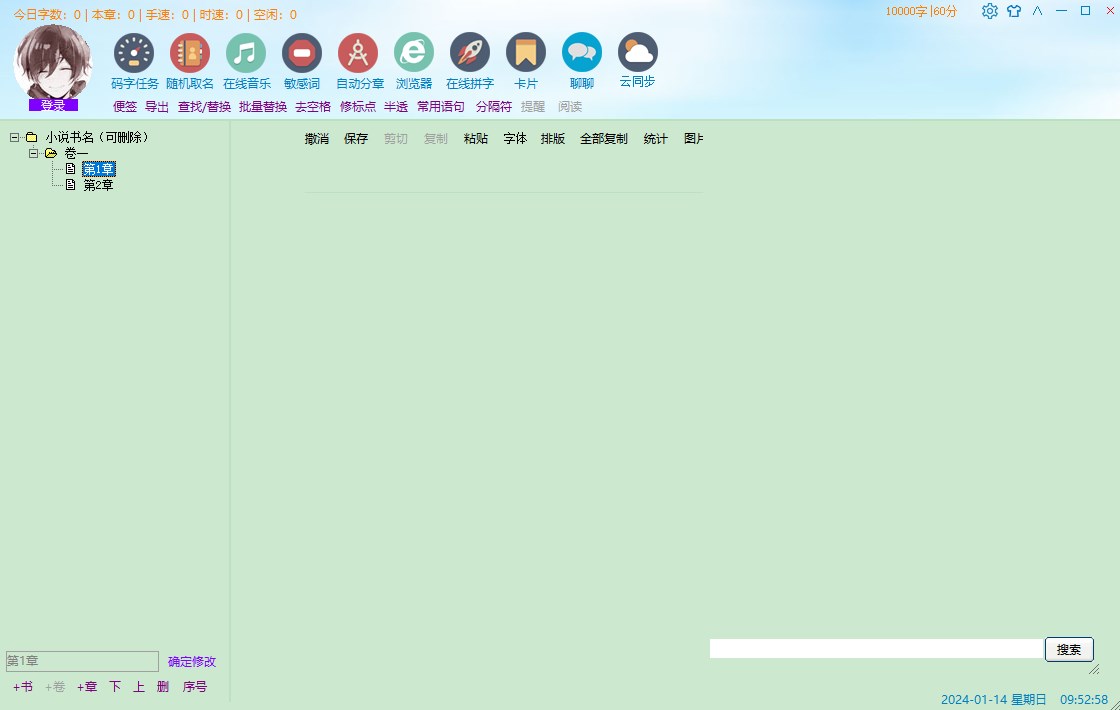 4、即时统计:字数即时统计,创作时,时时可见字数、码字速度、码字时速