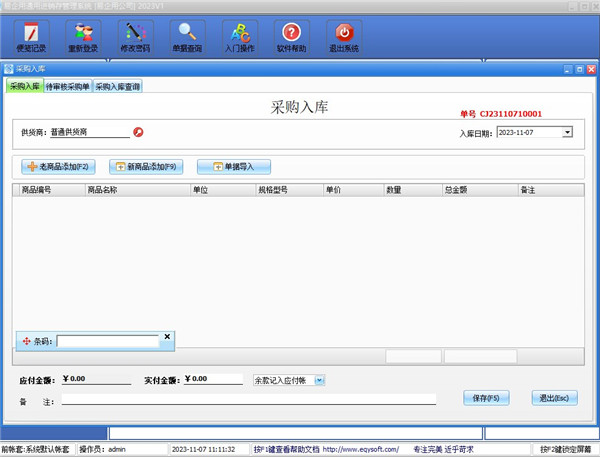 1、进货管理:进行商品采购入库,采购退货,进/退单据和当前库存查询,与供货商的往来帐务。