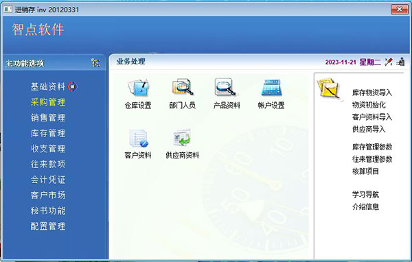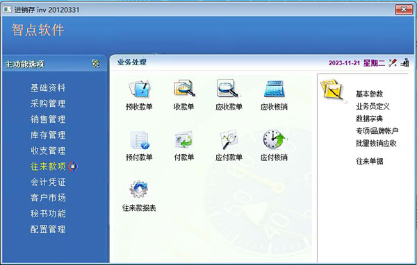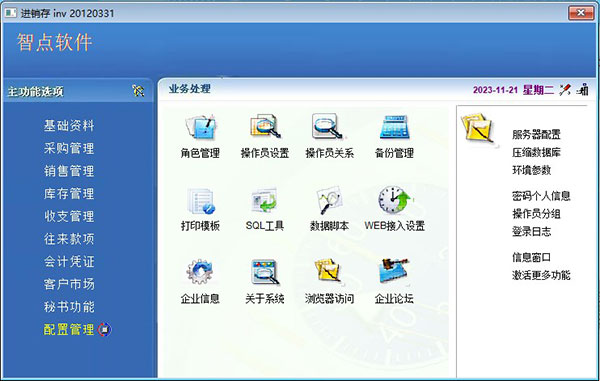 可管理并自定义各项智点进销存软件的功能,包括角色管理、操作员设置、操作员关系、备份管理、打印模板、企业信息等