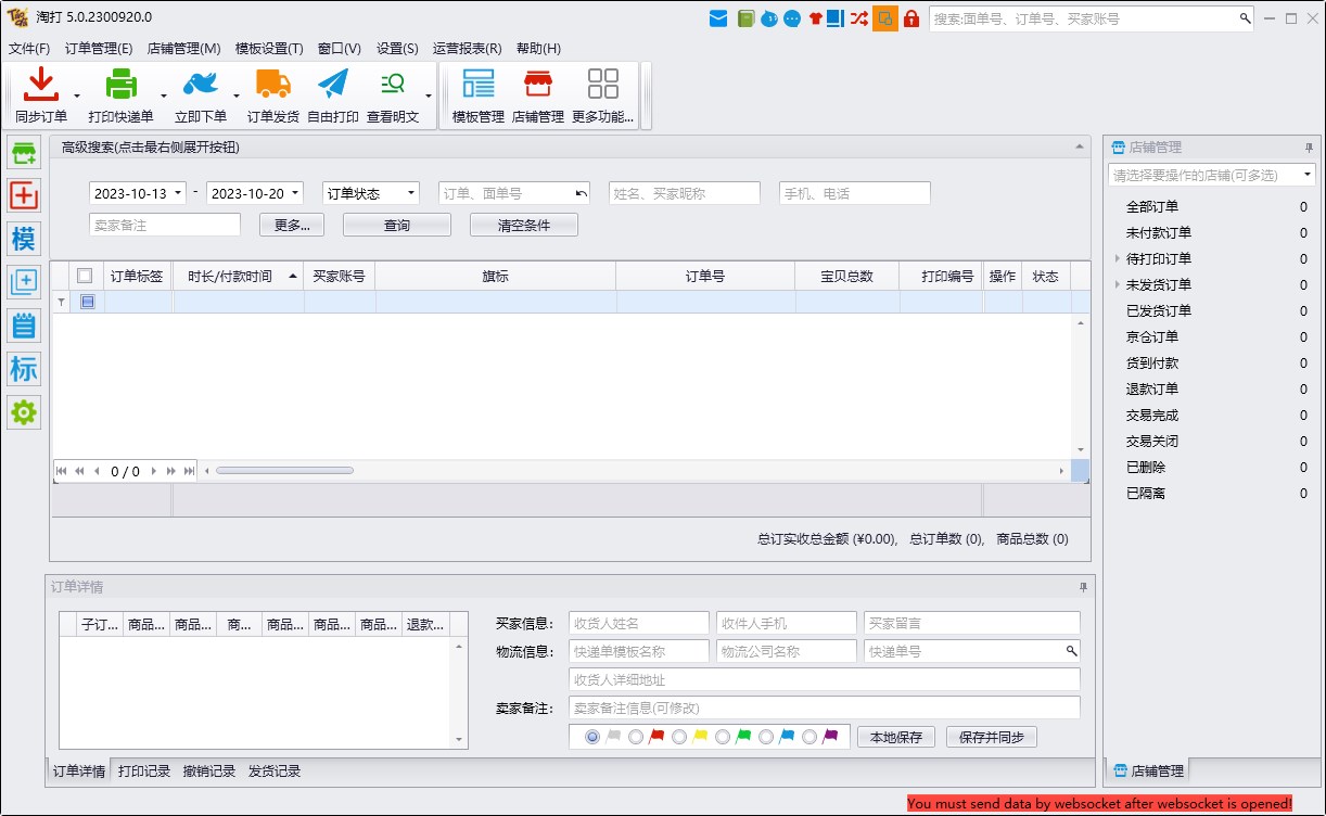 1、支持下载全状态订单、随时订单同步,打印单据、标记发货、批量好评
