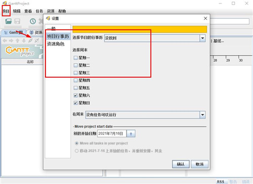 3、点击“查看设置”在甘特图设定功能中,还允许您设置项目开始结束时间,也可以显示周末样式,可以显示网格颜色