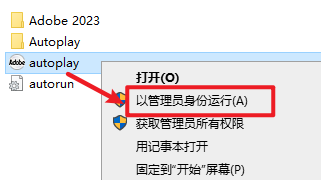 1、鼠标右键解压到“Adobe XD 202355.2.12”,打开【Adobe XD】文件夹,选中autoplay,鼠标右击选择“以管理员身份运行”