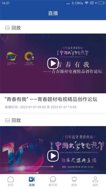 3、进入“直播”页面,就能观看该地区的各种直播比赛,主题活动,名家讲坛等等。