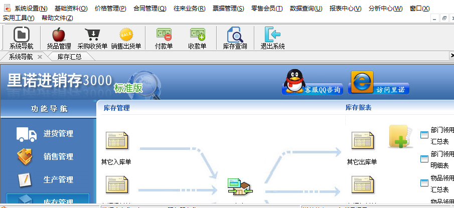里诺进销存3000软件是一个集“进、销、存、财”四位一体的全功能商贸管理软件,强大的报表与集成查询功能让用户的管理工作能够轻松进行,软件还支持双计量单位,当同一种物品有两种计量单位时可以相互换算了。软件使用操作也很简单,用户能够轻松上手使用,里诺进销存3000软件内的所有的功能用户都能轻松找到,不用打开多个窗口重复查询,是你商贸管理的好帮手!