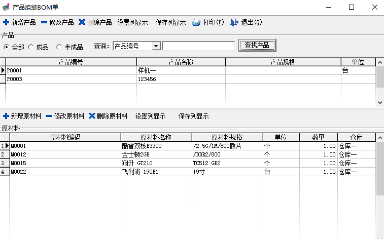 5、支持BOM物料清单,成品出库时可查看那些零件库存不足。