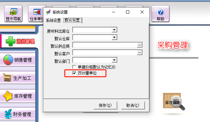 初始状态下,软件默认双计量单位功能为关闭状态,需要手动开启。