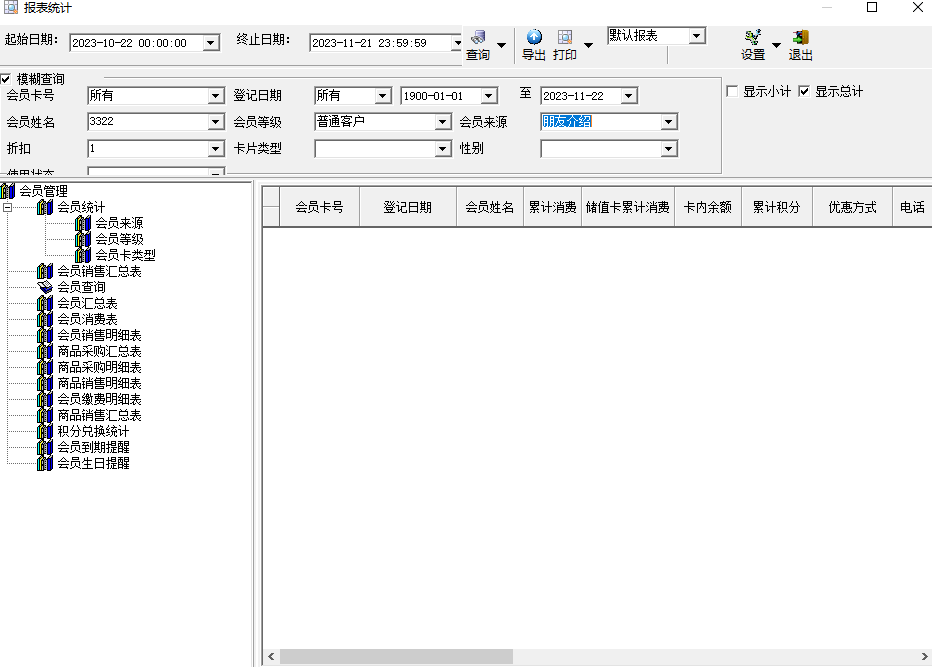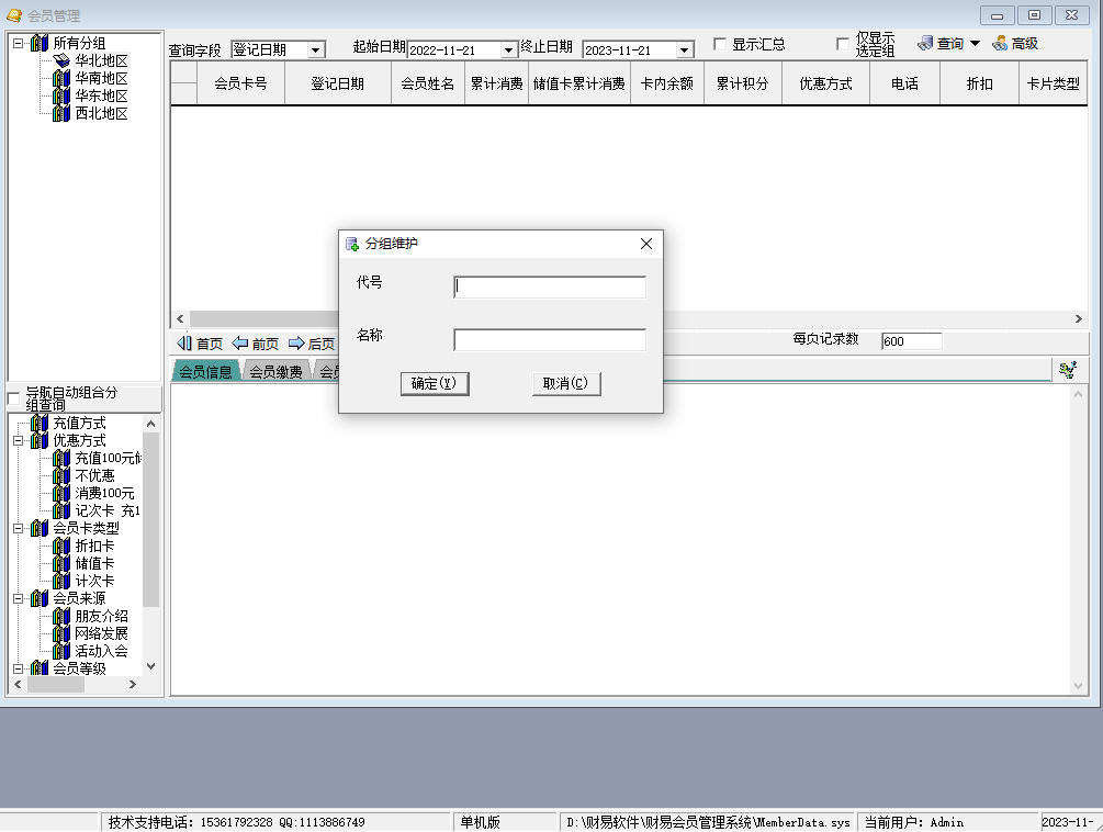 在导航栏左边,点击右键,可以增加统计分组,子分组。在导航栏右下角,可以设置会员等级,会员分类等其他配置信息。