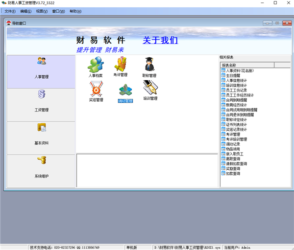 财易人事工资管理软件有机的将人事管理和工资管理两个模块完美结合在一起,以导航式界面展现在用户面前,操作非常方便简单,关联性非常强