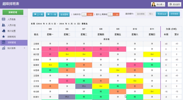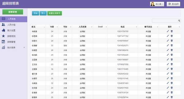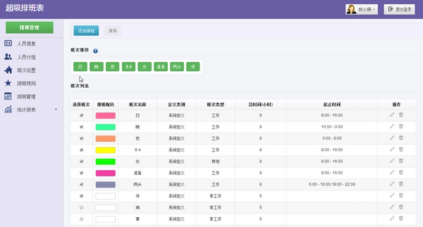 智能排班,可设置好排班条件系统智能排班