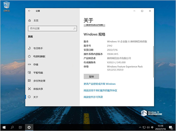 windows10神州网信政府版是由微软联合中国电子科技集团公司—神州网信技术有限公司共同开发了首个Windows 10 中国政府版。该版本基于 Windows 10 企业版定制,它已经包括政府和企业需要的许多安全性和可管理性功能,移除了政府不必要的特性,比如OneDrive、Cortana、Windows Defender、同时采用了中国自己的加密方式,可以进行KMS本地激活,并支持离线打补丁,重要的是神州网信政府版采用了Windows 10 企业G版制作,可以使用KMS激活长达150000天相当于400年的时间。同时,定制版的win10还删除了一些诸如 OneDrive、娱乐等政府不需要的功能,另外满足“政府数据不出境、留在中国”的要求。