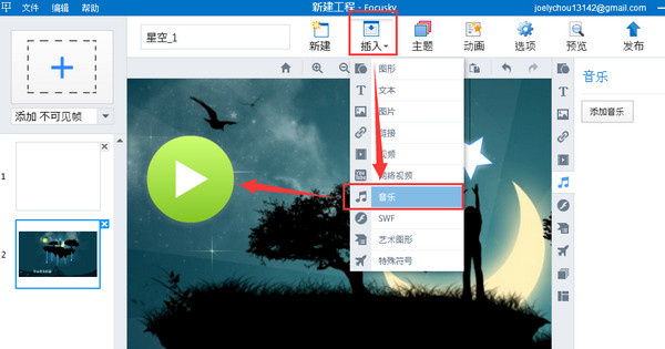 在focusky演示文稿中添加声音播放器非常便捷,有以下两种方法: