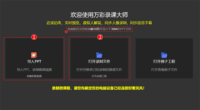 导入PPT文件后自定义录制设置。录制前检查好录制设备,确定PPT内容显示无误后开始录制。