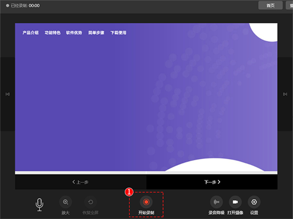 点击【开始录制】按钮马上开始录制视频,麦克风闪动表示正在录制中,一页PPT为一个视频片段,可暂停或结束录制,录制过程中支持随时重录,边录边改,十分方便。