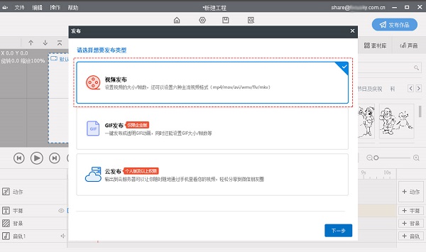 4、发布作品,将项目输出为视频、GIF和发布。