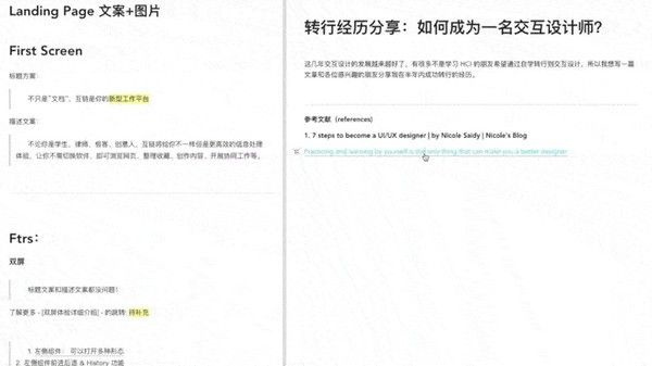 只需拖拽或“复制+ 粘贴”,你想引用的信息即可嵌入文档并随时调取。无需打开多个软件,独创双屏让你更加专注内容本身,让信息检索更为高效。