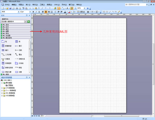1.在“文件”菜单上,依次指向“新建”、“软件”,然后单击“UML模型图”。