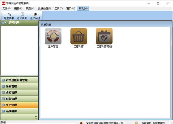 1、生产管理:生产管理、工序入库、工序入库归档2、产品及原材料管理:商品管理、商品信息(库存)