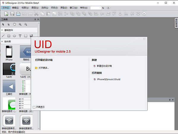 新建一个文件,其中系统会自动为您新建一个窗体,这表示您将开始使用UID为您设计交互稿了。