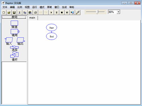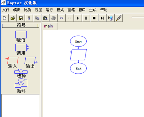 5、Raptor的目的是进行算法设计和运行验证,所以避免了重量级编程语言,如C++或Java的过早引入,给初学者带来的学习负担。
