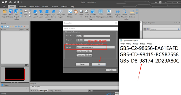7、打开key序列号txt文本,随便复制一个注册码复制到下图框选的地方,上面随意填写名称,点击ok;