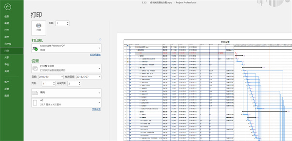 3、点击打印并将PDF保存到本地 可以看到此时整个甘特图和左侧的任务列表都被我们打印出来了(当然甘特图有可能会遮挡任务列表,这个自行调整一下),并且放大以后也是清晰的。