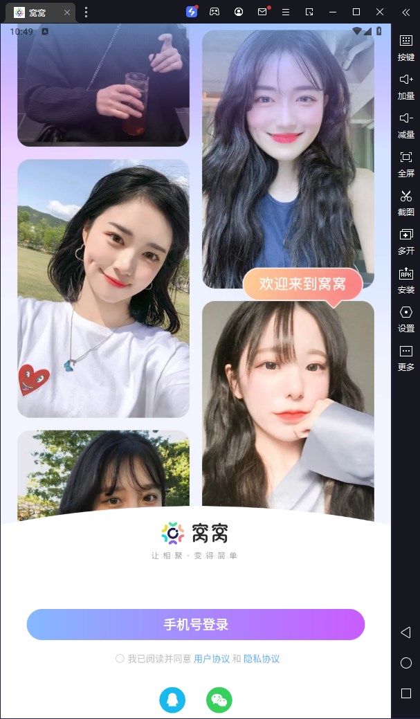 窝窝电脑版是需要借助模拟器在电脑上运行的一款社交互动聊天交友软件。用户使用软件可以通过声音、外貌、交流、连麦、语音互动、动态等方式进行交友,一键就能匹配交友CP,一起聊天、看视频、看电影、玩游戏等,互相倾诉心声,建立新的友谊,体验甜蜜的爱情。