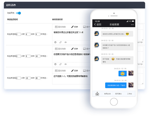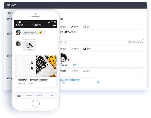 针对于新关注的公众号粉丝,可以在48小时内设置多条追粉消息,由系统自动智能发送,引导用户开口。