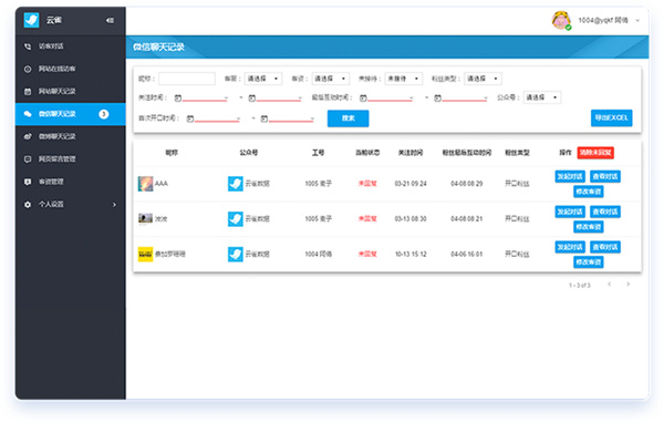 每天,云雀客服的后台会从用户来源(搜索引擎、关键词)、用户质量(开口率、客资转化率)等多个维度生成统计报表,为网络营销提供数据支持。