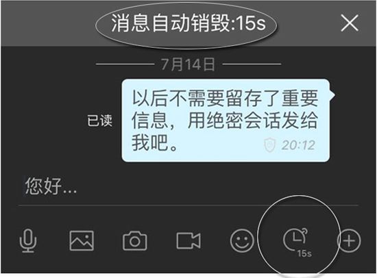 独立聊天窗口,不显示用户任何信息;时间可以自由设置,所有信息边聊边销毁;绝密会话结束,数据清空,不留痕迹。