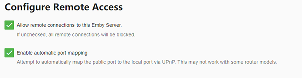 若当地运营商提供了公网(外网)地址,Emby Serve 开启公网访问选项后,也可以通过公网访问服务端。若运营商没提供公网地址,又想通过公网访问服务端,那只能做内网穿透(本篇文章不讨论)。