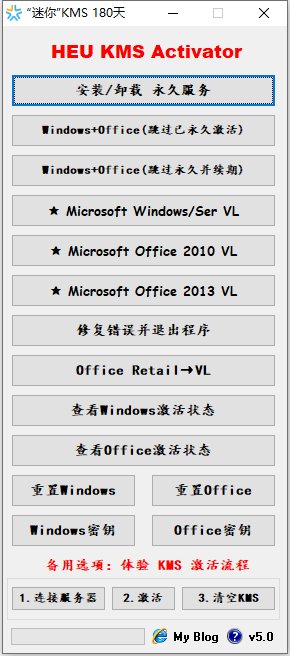 1、本工具为KMS激活,每隔180天需要激活一次(无需联网)。