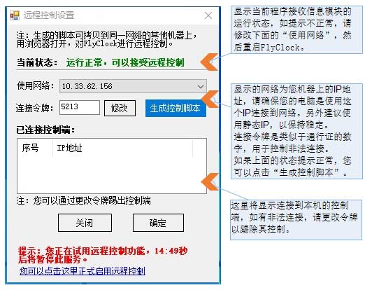 5、【远程控制】FlyClock支持远程控制启停、显示,让多人合作更方便,也可更好应对演讲过程的意外情况。