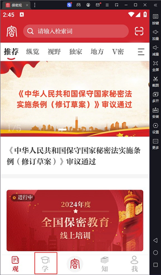 1、在本站下载保密观电脑版后打开,点击学部分;