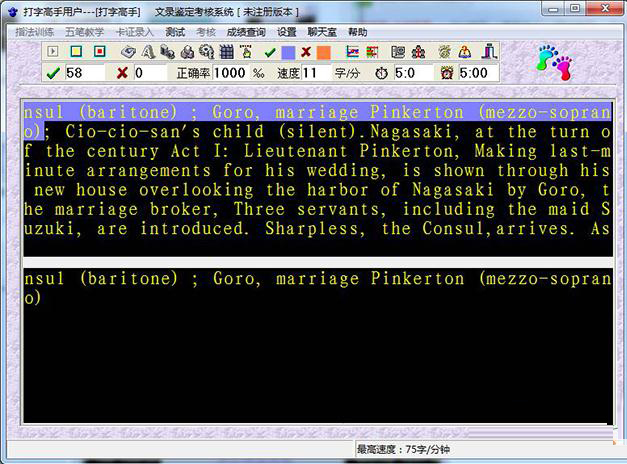 英文:错误率1‰以内,录入速度220字符/分,得满分。