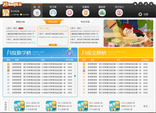不仅如此,3E口语电脑版还将现代信息技术与英语听说教学与实践深度融合,运用信息技术、人工智能技术构建人机智能交互英语听说练习、听说考试场景与环境,以新课标同步课程、优质课外读物、优秀校本课程及全题型听说考试题库为核心资源,旨在通过帮助学校建立听说能力测评与学习训练体系,创建“以测促学、以测促练、以测促用”学习平台与环境。