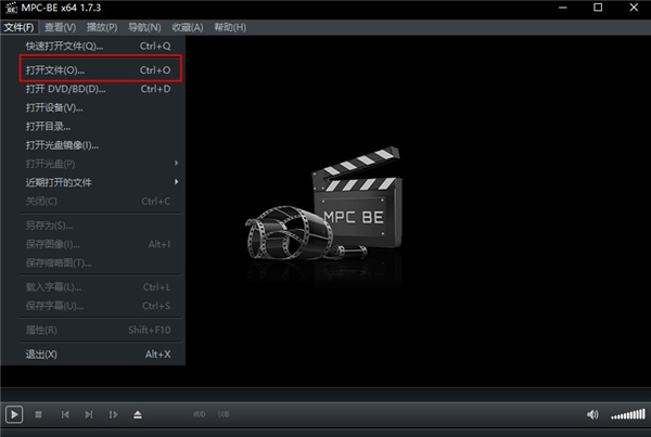 1、在本站下载mpcbe播放器官方版后,点击打开文件;