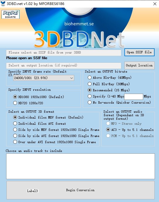 1、把需要转换成左右格式视频的SSIF文件复制到3DBDNet目录下,这里以第一个文件00000.ssif看运行界面open ssif files 是输入文件2、output location 是输出文件保存路径