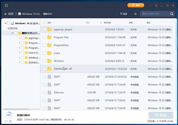 快速扫描主要用于从已清空的回收站中找到并恢复删除以及丢失的数据。