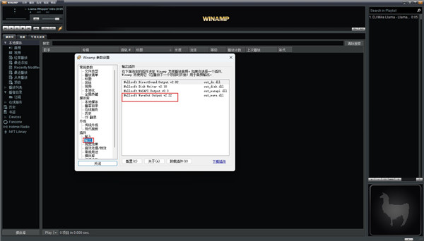 2、主菜单下选择Options→Preferences→Plug-ins→Output项,再在右侧窗口选择:Nullsoft Disk Writer Plug-in v2.0c(x86)[out_disk.dll]