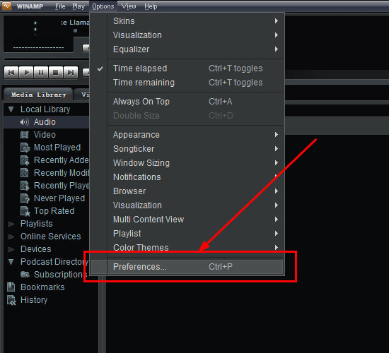 1、Winamp使用自带的位图来显示数字和字母,有时不能正常显示中文歌名。在主菜单下选择Options→Preferences→ Options→Display,右边窗口Display options里将Use bitmap font for main title display前的勾去掉,使Winamp使用字库来显示文字,中文正常显示