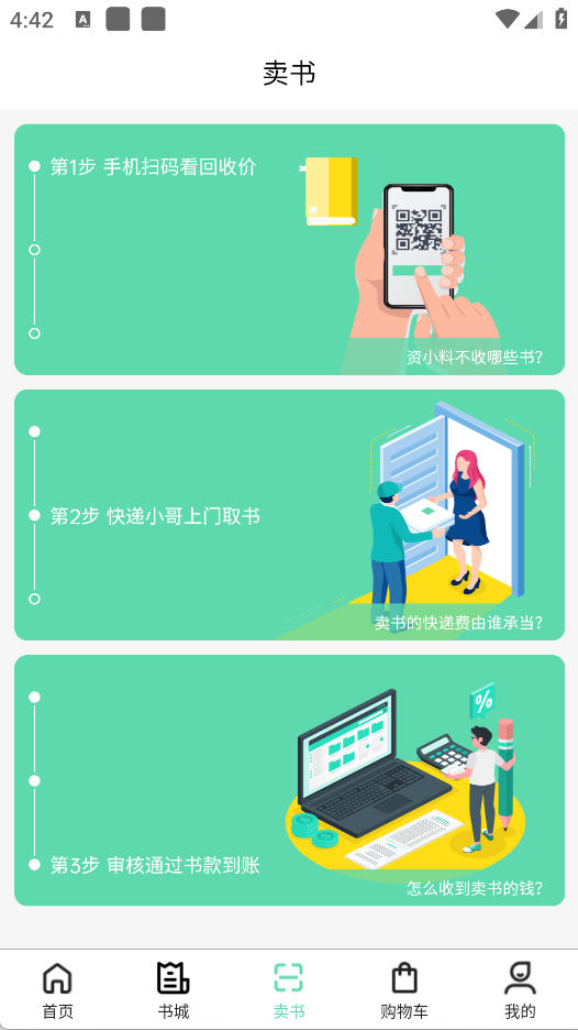 6、资小料App还提供便捷的卖书服务,通过“扫码查价—上门取书—审核收款”三步即可完成二手书交易,让闲置教材快速变现,流程简单高效。