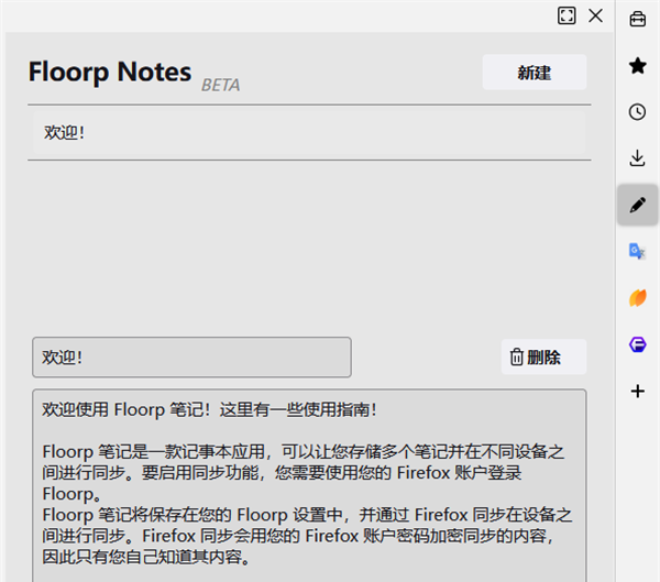 7、Floorp 笔记是一款记事本应用,可以让您存储多个笔记并在不同设备之间进行同步。要启用同步功能,您需要使用您的Firefox 账户登录Floorp。