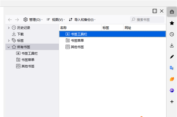 6、浏览器右侧显示很多功能,可以点击书签管理,查看书签菜单。