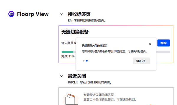 2、快速恢复关闭的标签页。您关闭的标签页都会神奇地出现在这里,无惧误关标签页。