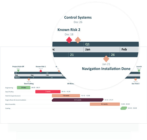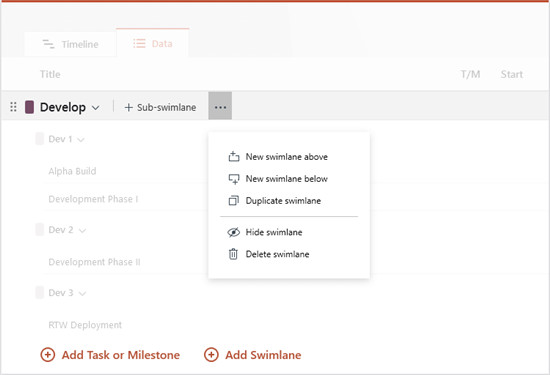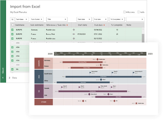 重新排列泳道、子泳道、里程碑和任务,或更新日期和持续时间……全部通过拖放操作