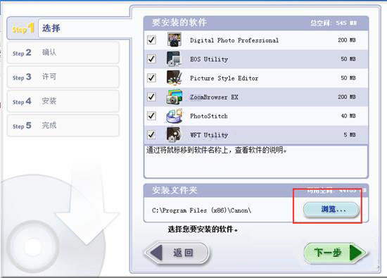 2、选择您要安装的Digital Photo Professional组件,您可以自行勾选,选择完成后,选择完成后点击下一步。