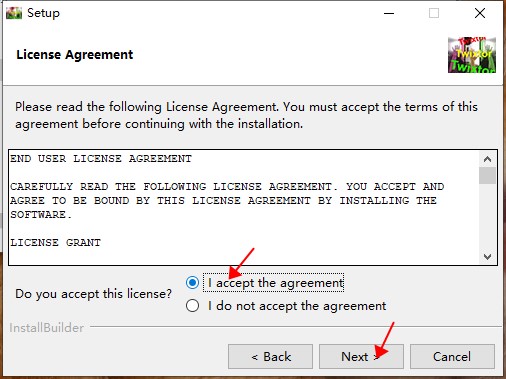 4、点击【 I accept the agreement】然后点击【next】